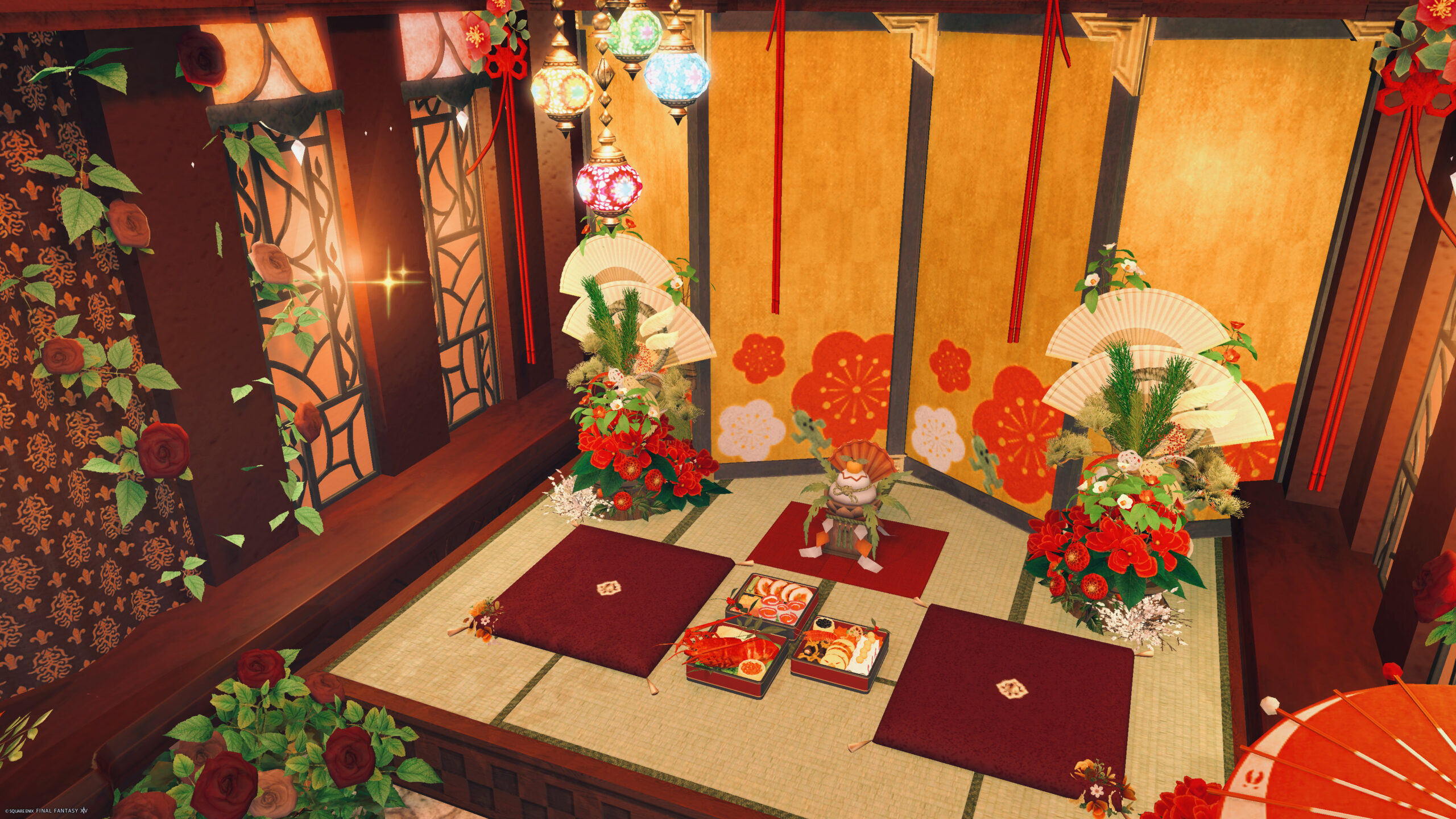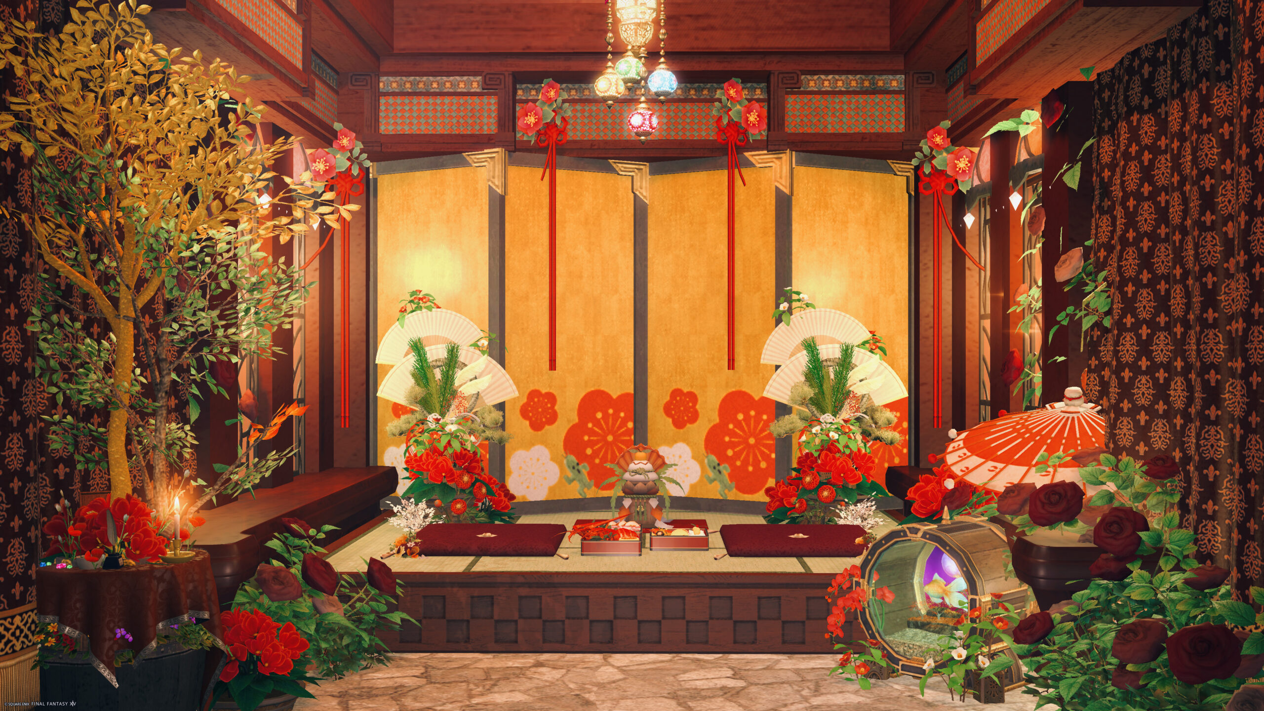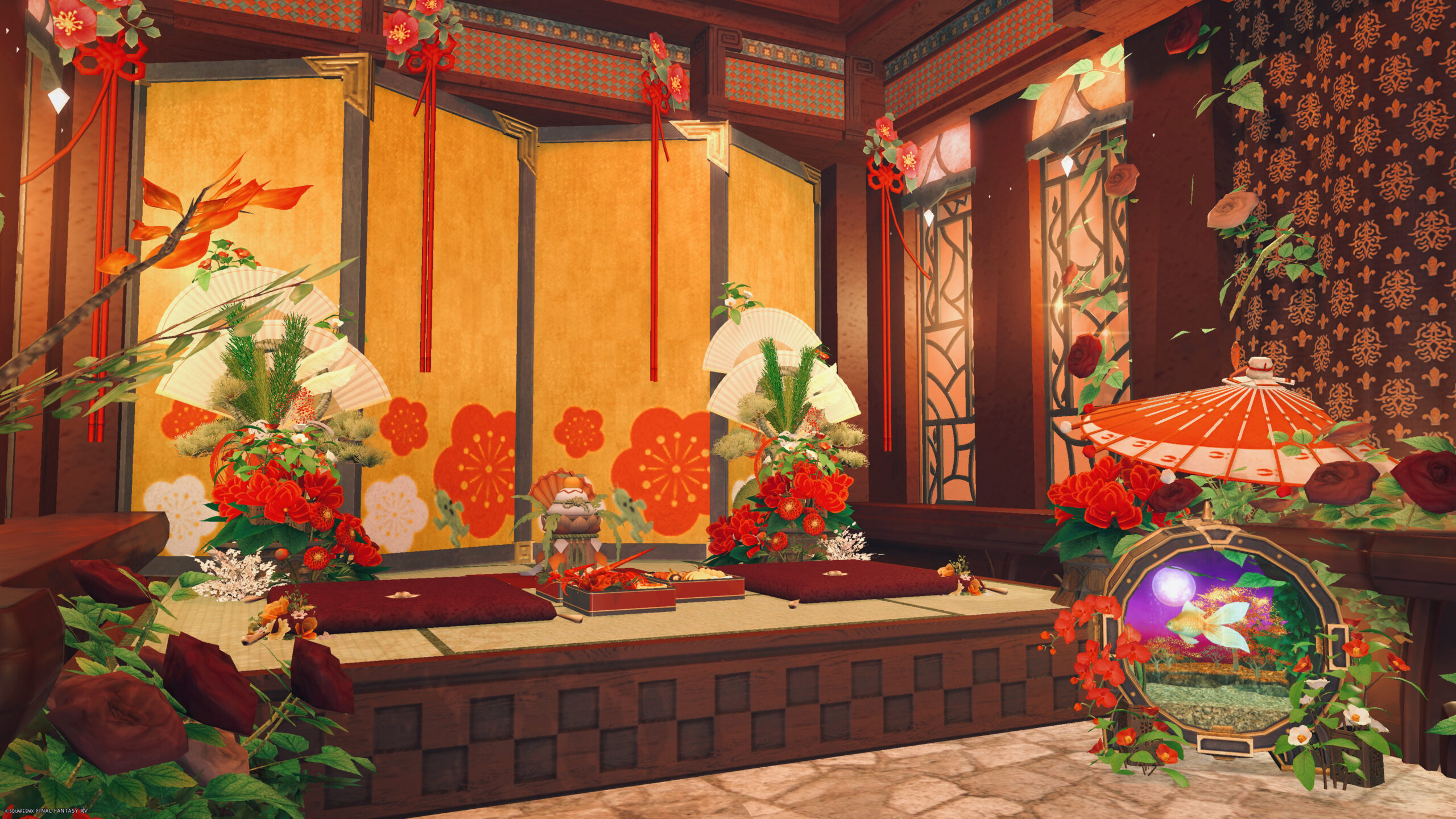 金椿賀正 by magomago(||BR||)🌐Elemental / Carbuncle(||BR||)📍エンピレアム18区(||BR||)アパルトメント6号室(||BR||)椿彩る、賀正の座。(||BR||)#mgmg_housing(||BR||)https://studio-xiv.com/studio/92775/