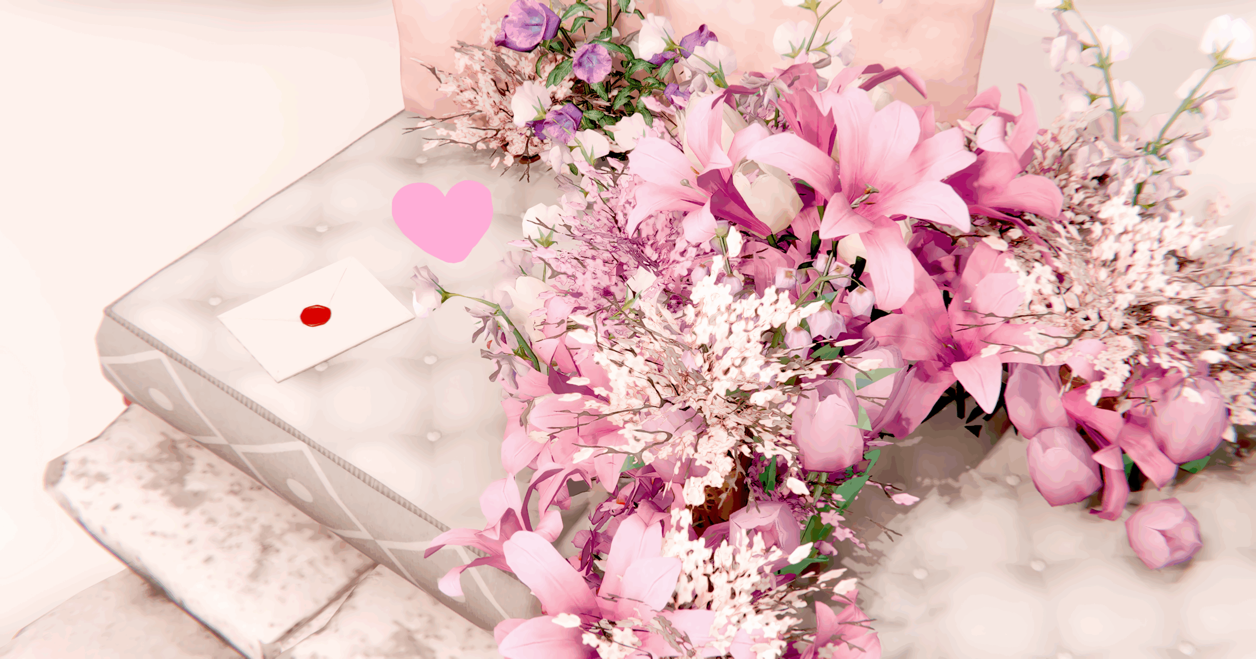 真正面の白いソファベッドには花達のブランケットを敷き詰めました