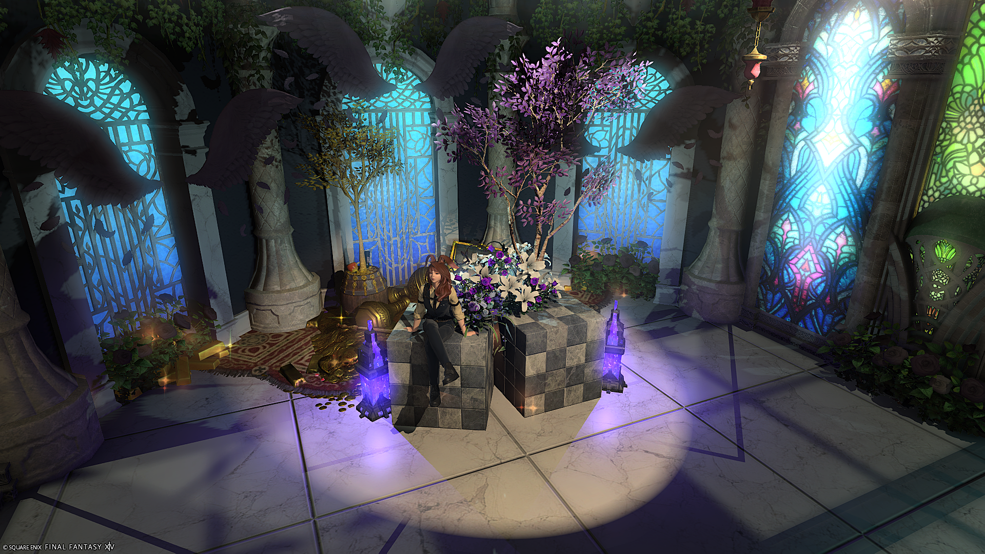 【紫影】 by Bell(||BR||)🌐Meteor / Zeromus(||BR||)📍ミスト・ヴィレッジ5区8番9号室(||BR||)癒しと再生には最適だとある賢者は言った。(||BR||)満ちる力を感じつつも平穏な安心感が得られる空間。(||BR||)持つ者としての試練はいつ終わるのだろう。。(||BR||)#studio_suzune(||BR||)https://studio-xiv.com/studio/93599/
