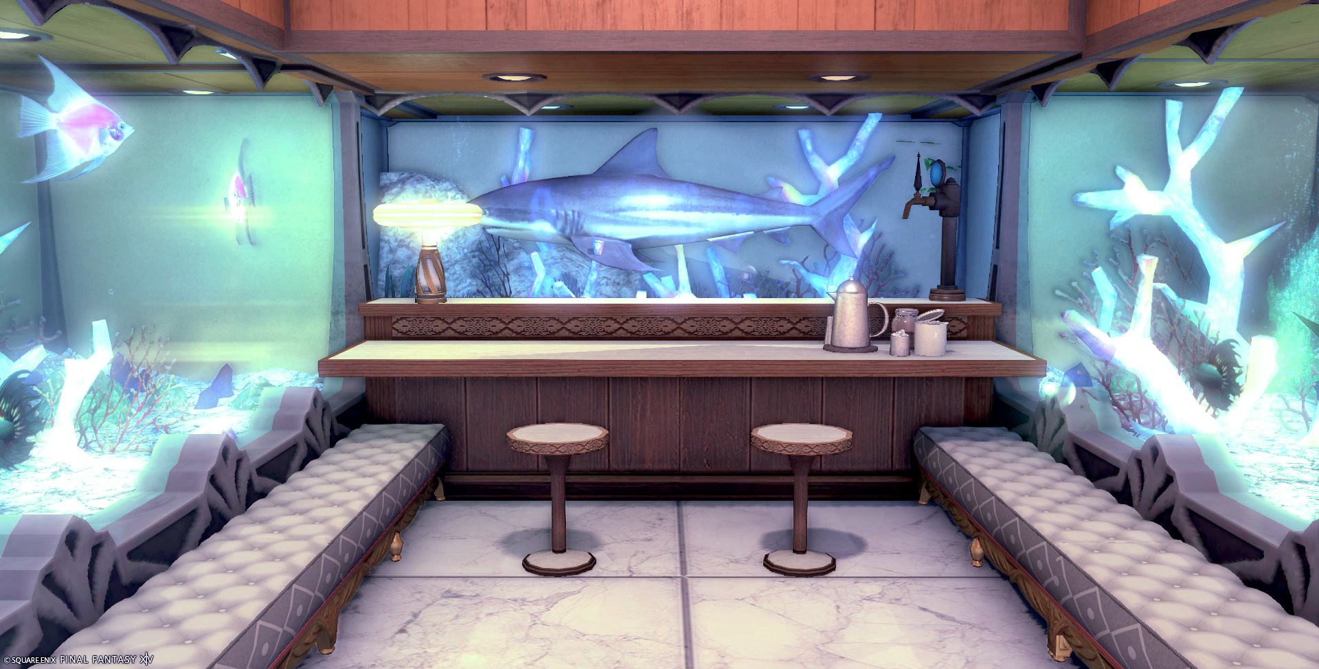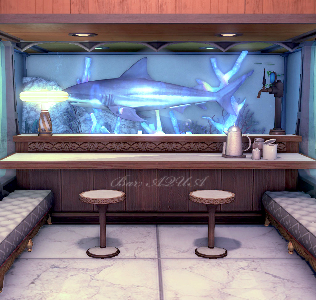 Bar AQUA by R(||BR||)🌐Meteor / Zeromus(||BR||)📍ミスト・ヴィレッジ30区(||BR||)アパルトメント80号室(||BR||)サメを眺めながら一杯飲みたいとき、ありますよね。(||BR||)1階はアクアリウムバー、ロフトは居住スペースとなっています。(||BR||)SS等お気軽にどうぞ!掲載時タグや住所などの表記は不要です。https://studio-xiv.com/studio/93802/