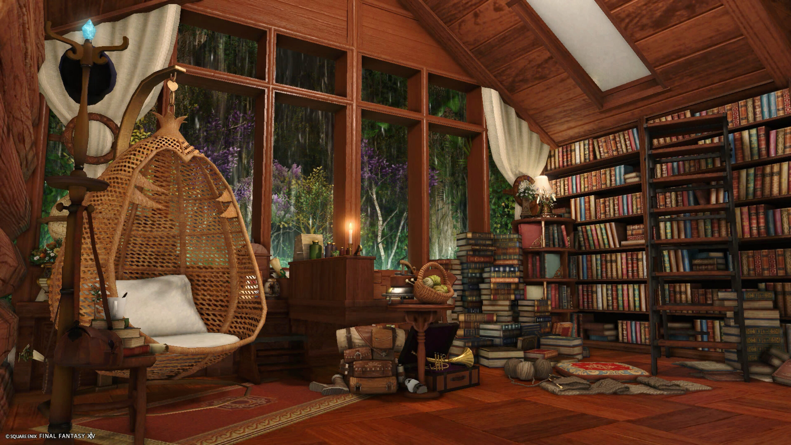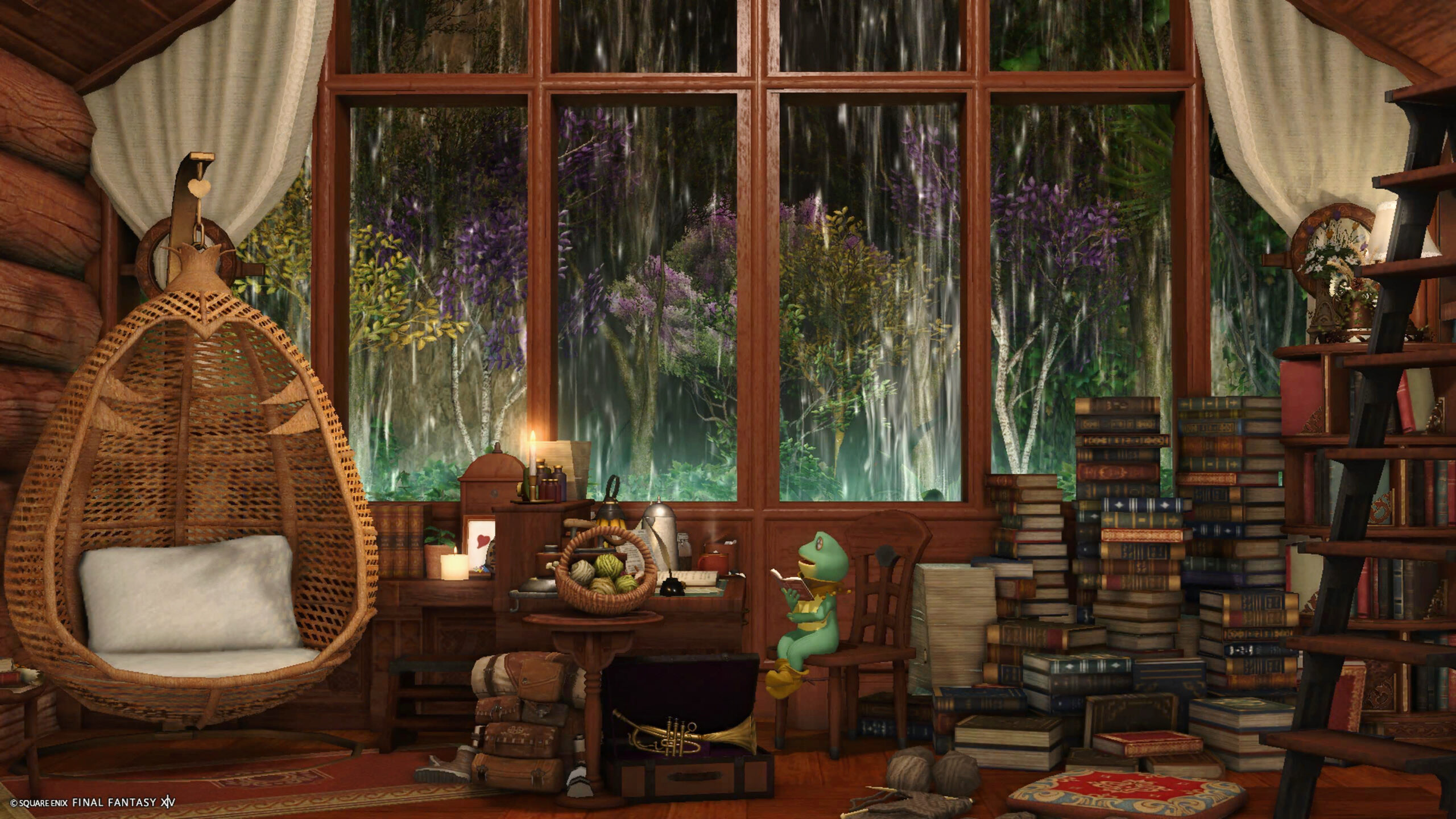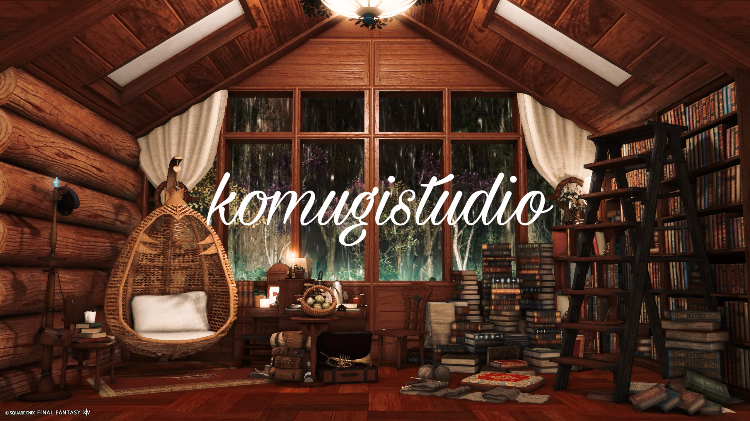 雨の日はログハウスで by こむぎ(||BR||)🌐Elemental / Atomos(||BR||)📍エンピレアム14区34番1号室(||BR||)雨の音を聞きながらゆっくりしませんか?(||BR||)お気軽にお立ち寄りください☂️(||BR||)🏷️#komugi_studio(||BR||)(タグをつけて投稿していただけると嬉しいです🐸)(||BR||)#komugi_studio(||BR||)https://studio-xiv.com/studio/93881/