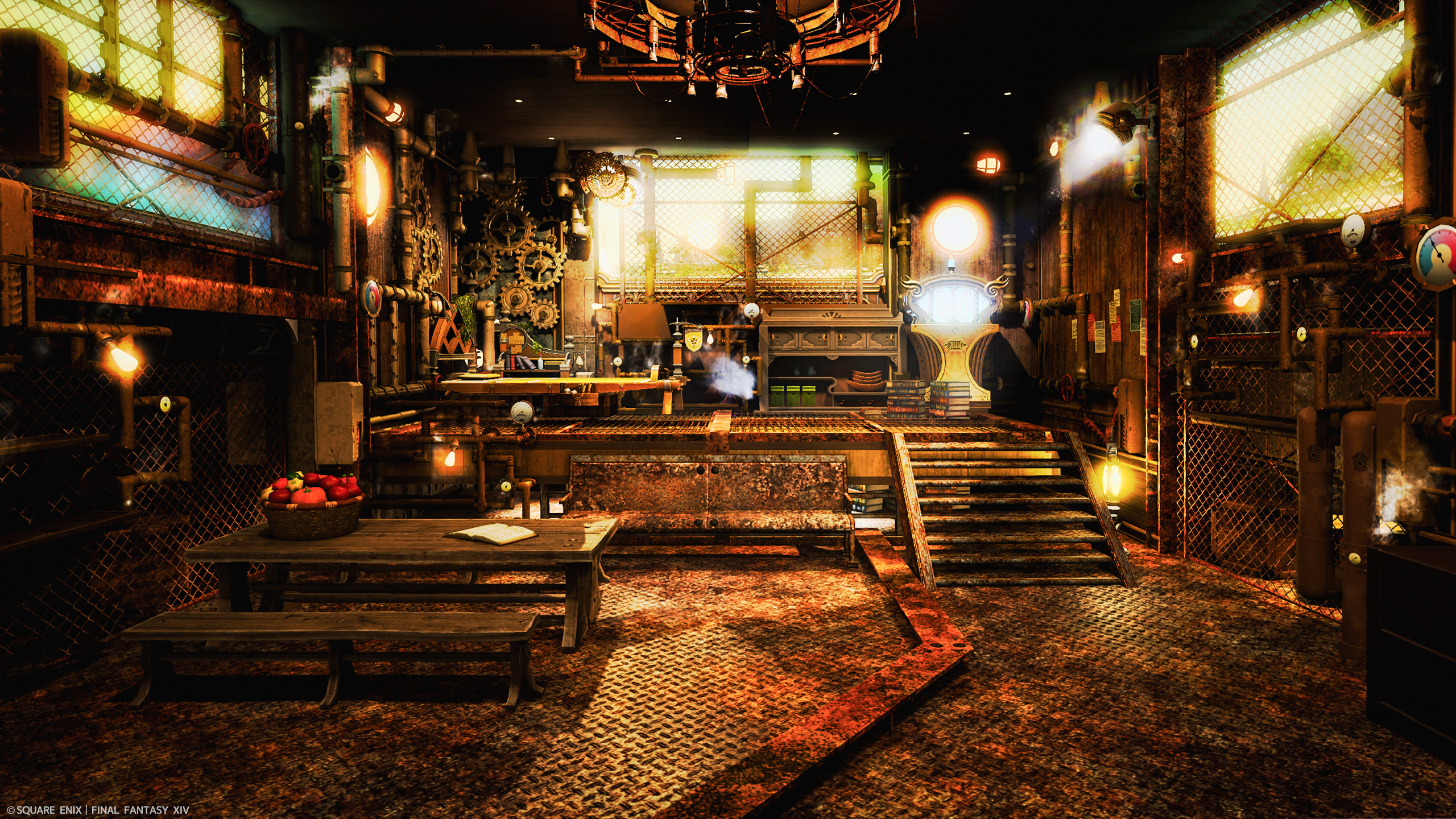Clockwork Foundry by OREO(||BR||)🌐Meteor / Mandragora(||BR||)📍ラベンダーベッド11区(||BR||)アパルトメント38号室(||BR||)鉄と蒸気と歯車多めスタジオを作ってみました(||BR||)スチームパンク風のミラプリでのSS撮影にぜひお越しくださいませ!(||BR||)#OreoStu(||BR||)https://studio-xiv.com/studio/93894/