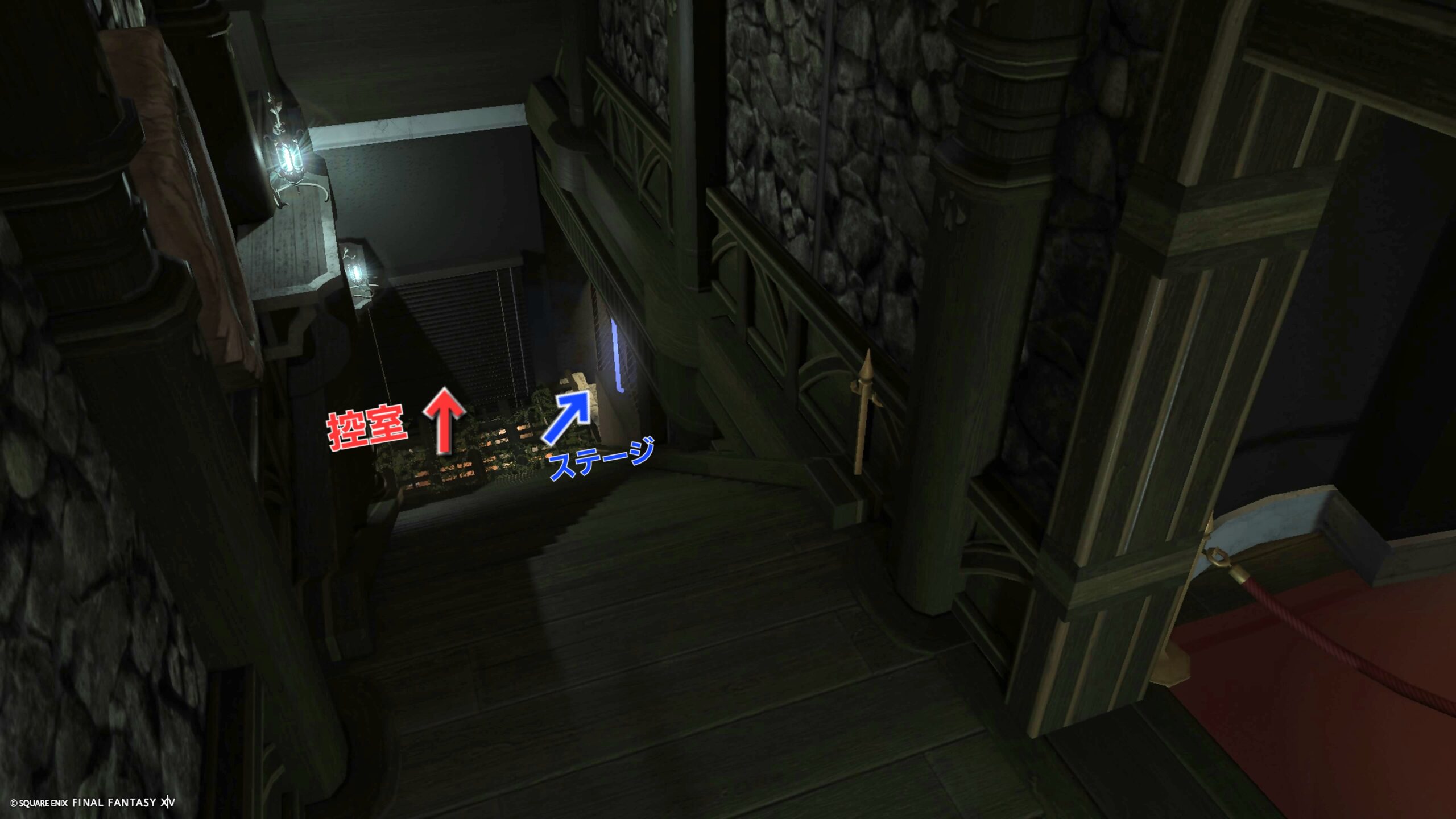 ※赤矢印より先は、演者様等の控え室となっております。