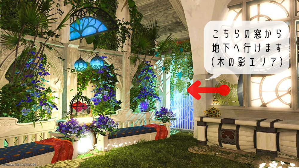 木漏れ日 by Akito(||BR||)🌐Meteor / Valefor(||BR||)📍ゴブレットビュート8区17番(||BR||)緑に囲まれたハウスです(||BR||)1F 本の置いてある所は寝れます(画像矢印あり)(||BR||)地下は木の影だけを楽しむ為に作りました(||BR||)数ヵ所寝る事ができます(居眠りで探してみてください)(||BR||)#Ackey_st(||BR||)https://studio-xiv.com/studio/94332/