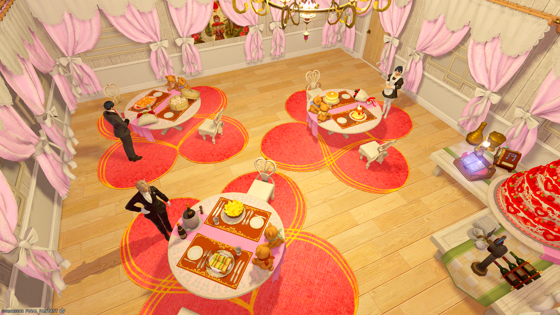 赤いカーペットのブースは、プロポーズ等でご利用いただければと願って作りました✨ ちゃんと応援団として、背後にエッダちゃん達が見守っております💞