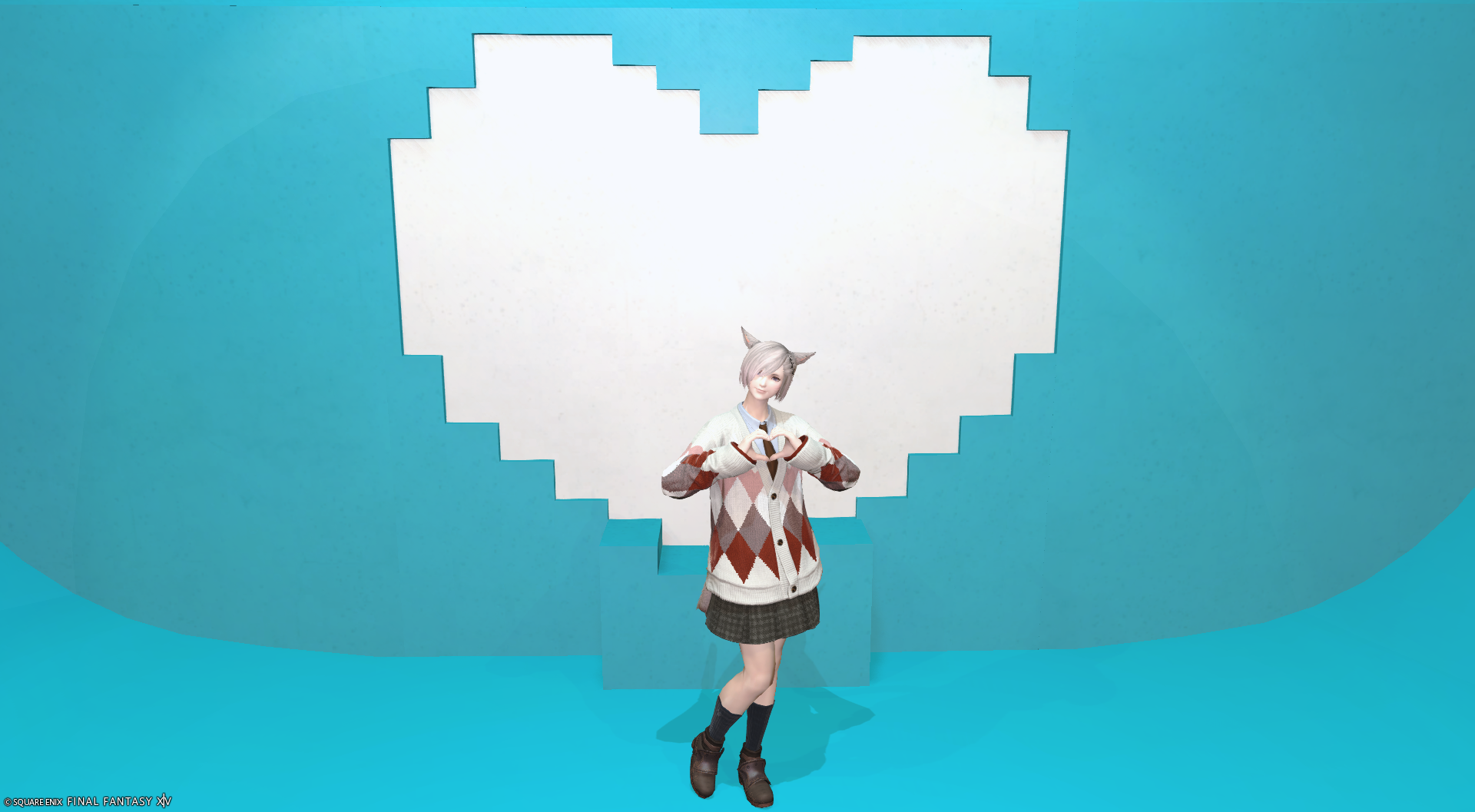 大きなハートの前に2人並んで腰かけ可能です(立つこともできます)