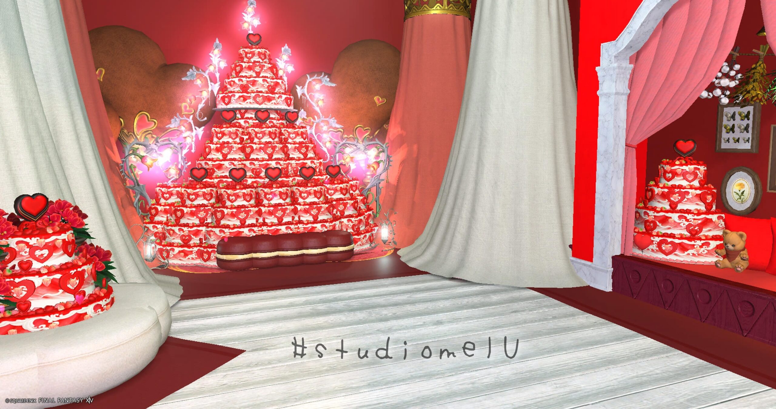 Rolanberrycake with love by mel(||BR||)🌐Meteor / Shinryu(||BR||)📍ミスト・ヴィレッジ21区(||BR||)アパルトメント24号室(||BR||)たくさんのロランベリーケーキ(||BR||)赤基調のバレンタインスタジオです(||BR||)#studiomelU(||BR||)https://studio-xiv.com/studio/94559/
