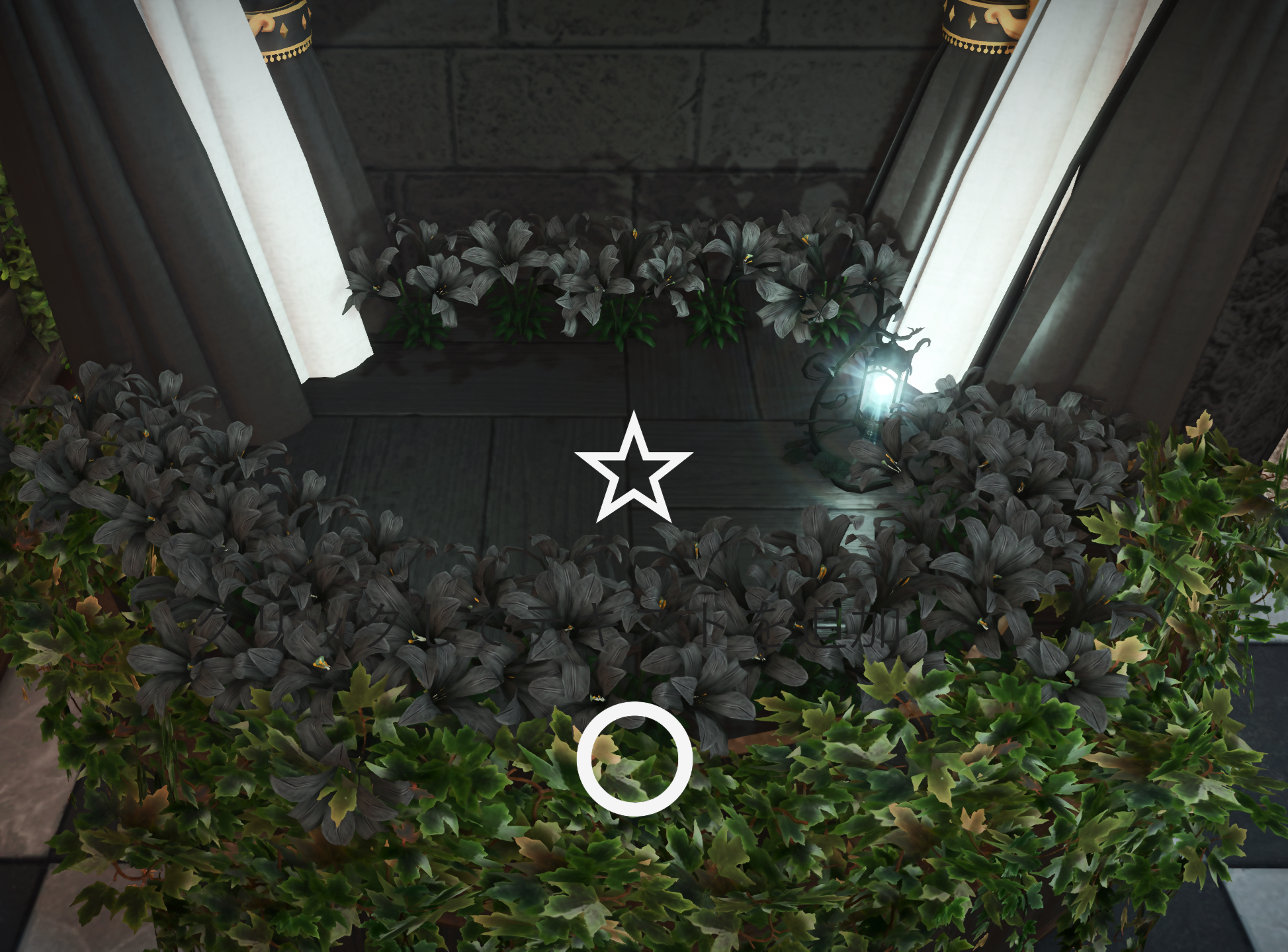 ステージの手前側(〇)とその少し奥(☆)に椅子が仕込んであります。