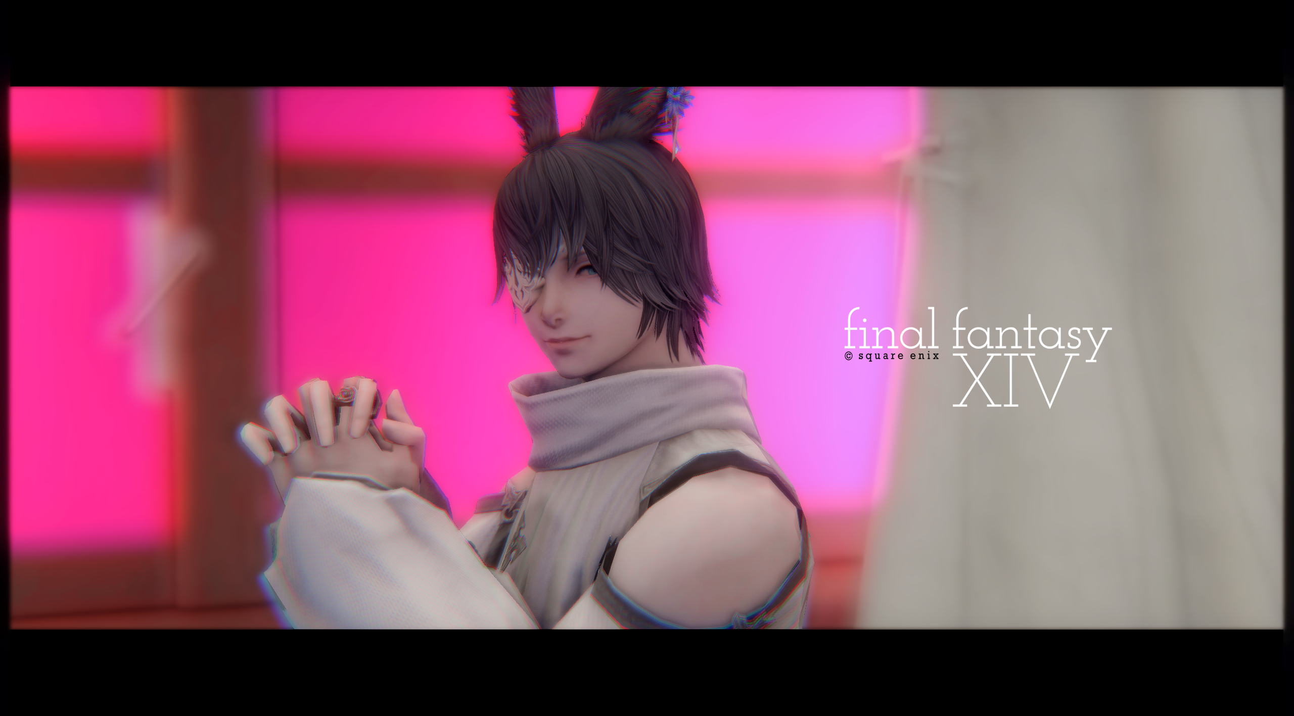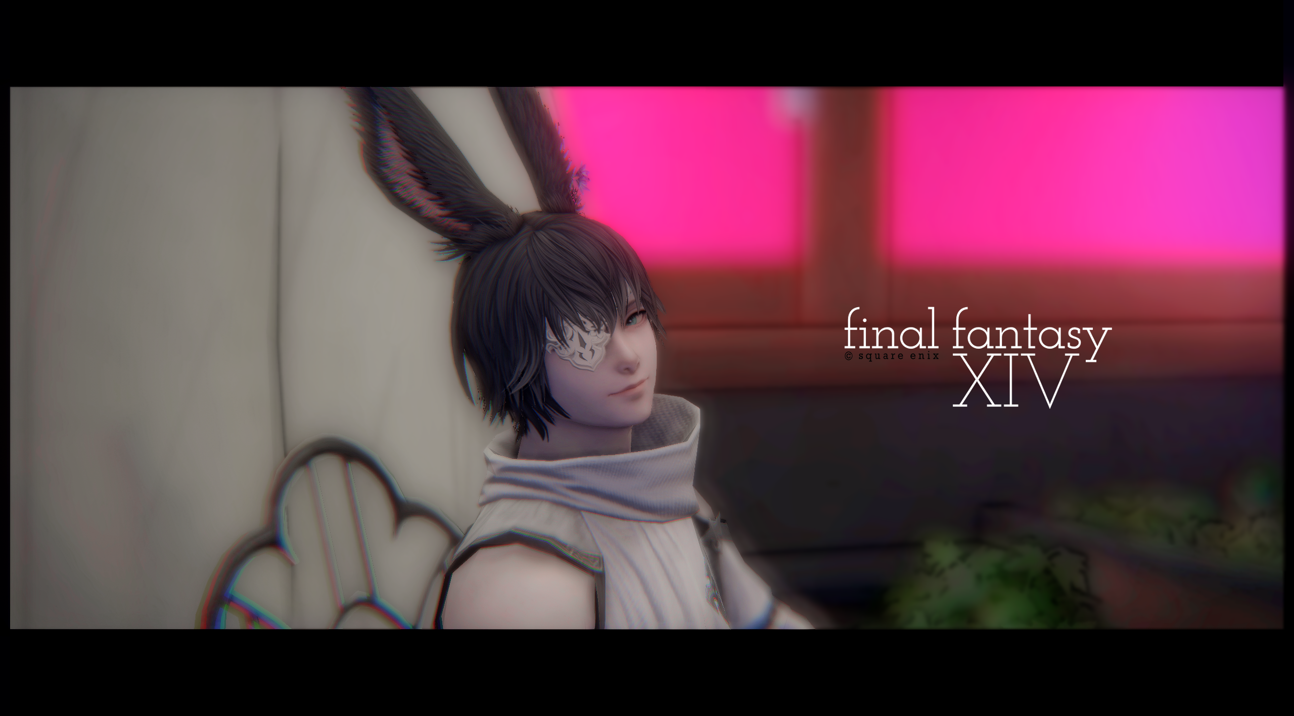 左の椅子に座り 笑う(ヴィエラ♂)+表情 (腕を下げているタイミングで止め)