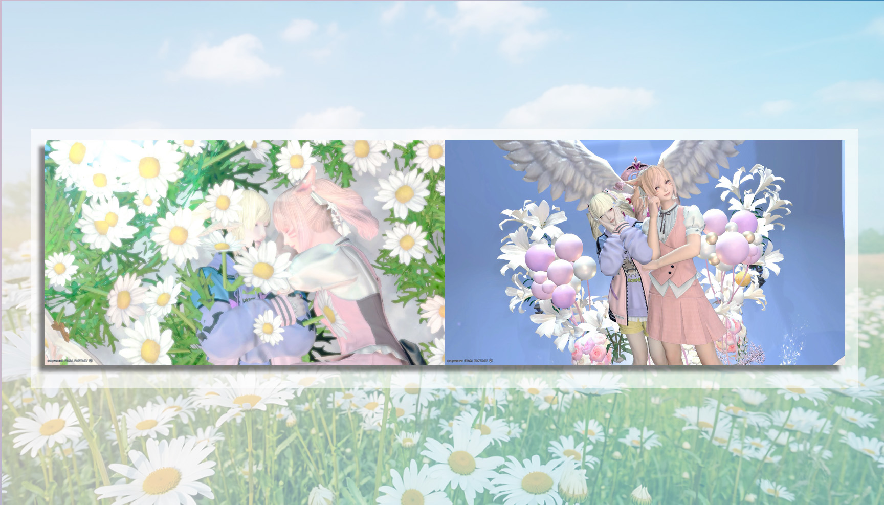 2枚目:利用者様がマーガレット畑で夢見るような素敵なツーショットを撮って下さいました!春の淡い空色に合ったさわやかなSSです!