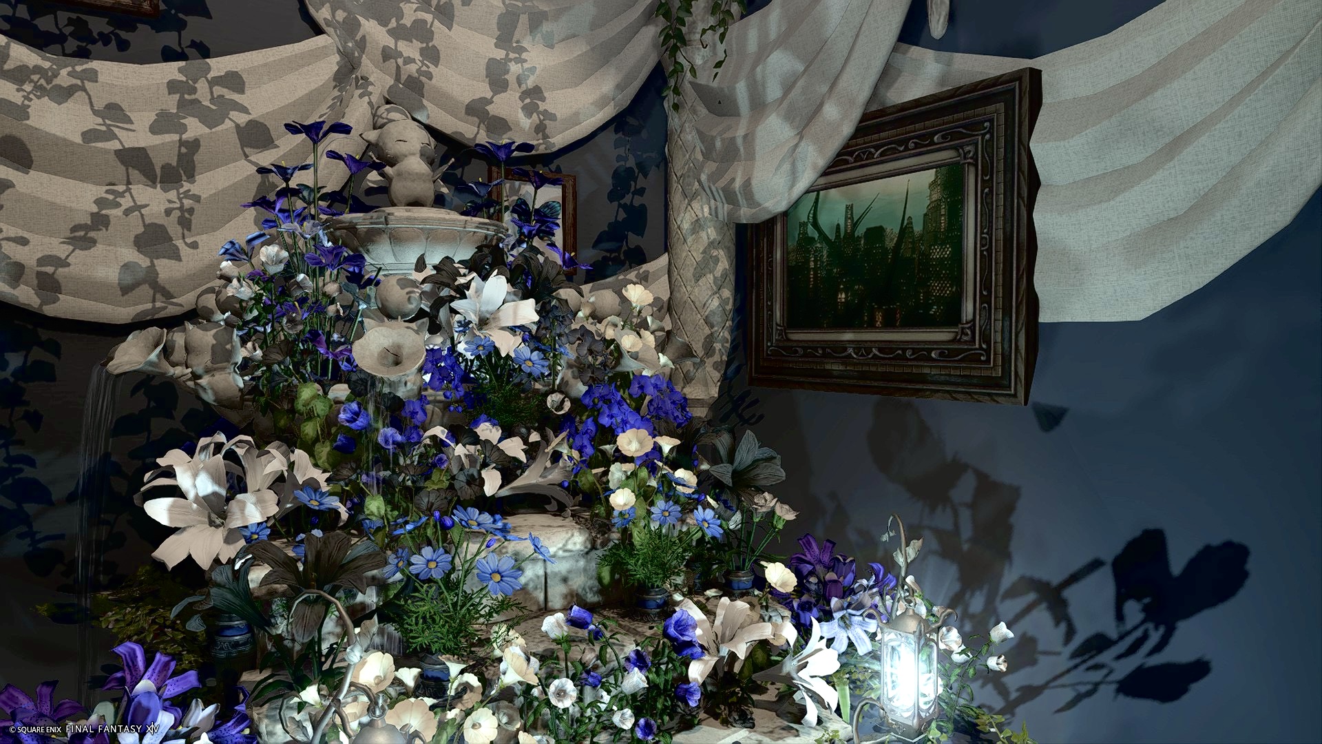 蒼の日 by リブチ(||BR||)🌐Mana / Anima(||BR||)📍ラベンダーベッド9区(||BR||)アパルトメント27号室(||BR||)『蒼の日』(||BR||)男性キャラでも撮影しやすいように寒色でまとめた花・光・影のスタジオです。(||BR||)中央にひとり座れます。(||BR||)体格差あるペアなら膝に座ることもできるかも?(||BR||)複数人では試せてない(||BR||)#SS_qote(||BR||)https://studio-xiv.com/studio/95044/