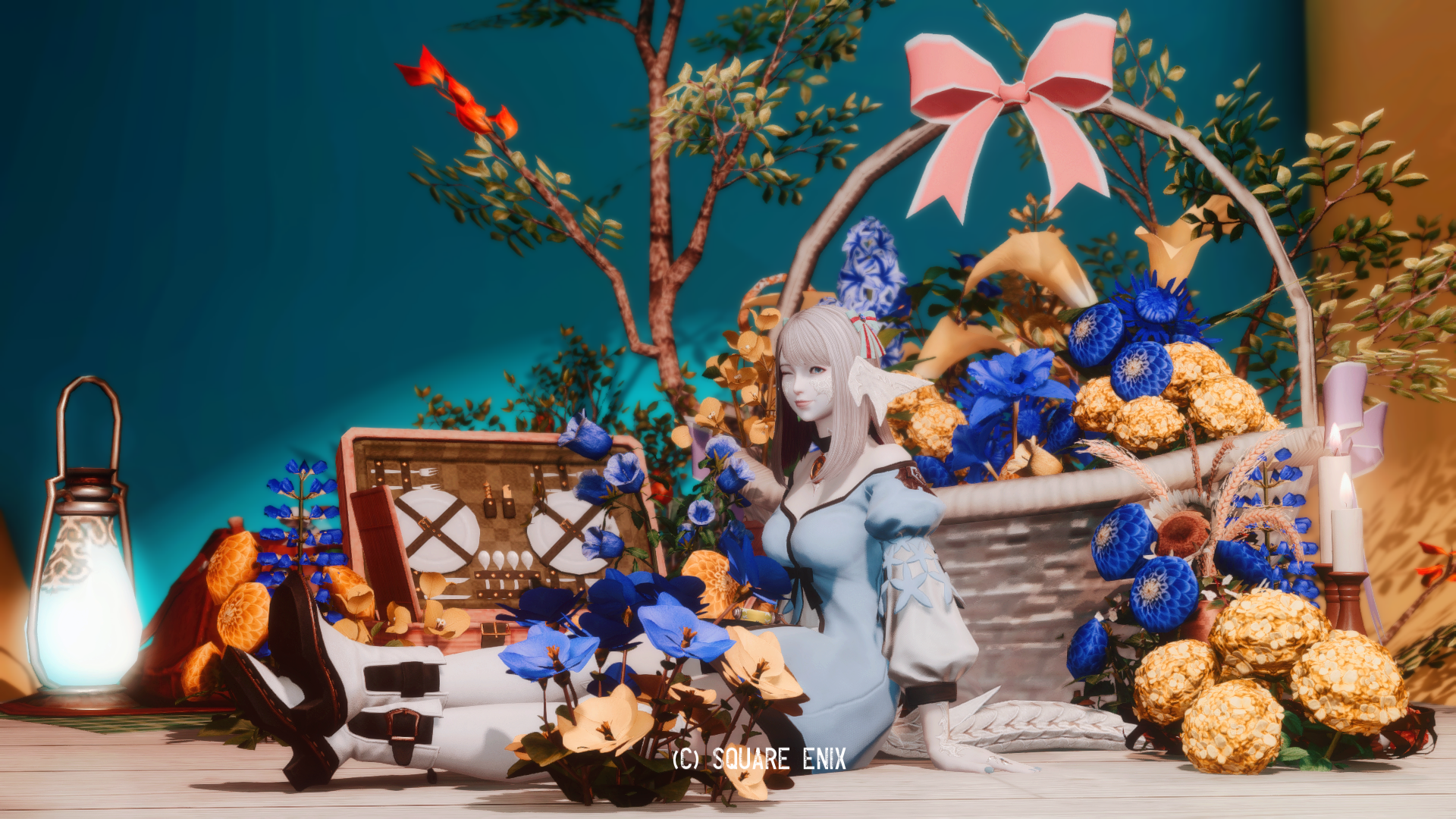 青いカンパニュラのスタジオです。最高身長のヴィエラにも合わせたので高い身長でも撮れるはず。