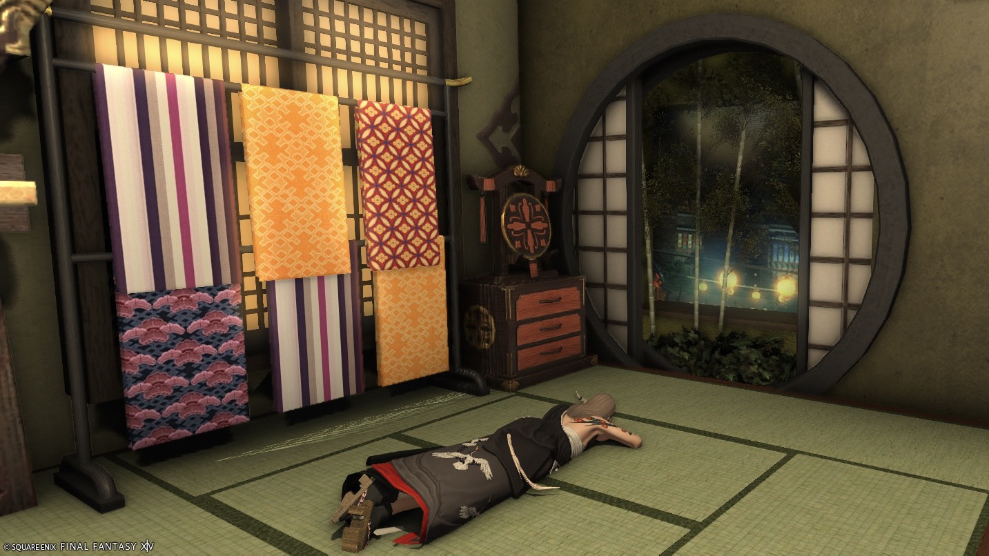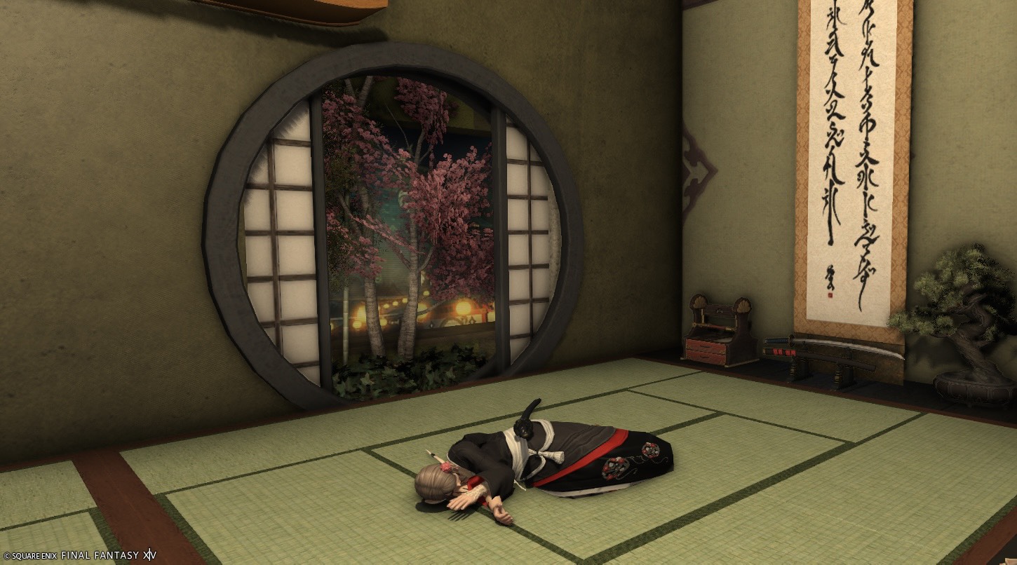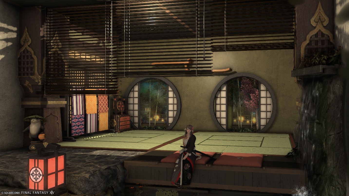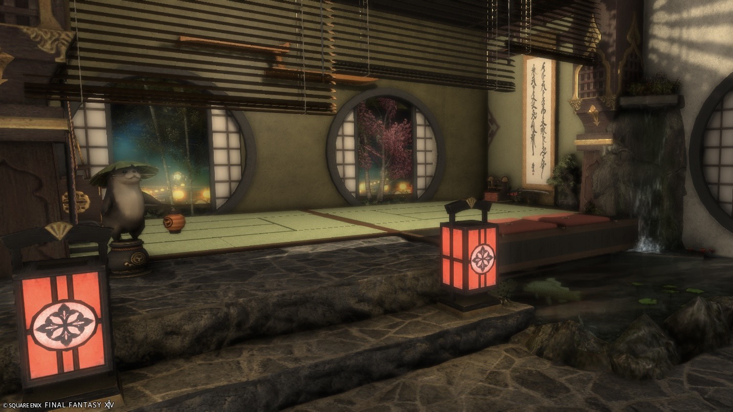 Fraise_03 夕涼み by くろのん(||BR||)🌐Meteor / Ramuh(||BR||)📍ラベンダーベッド22区(||BR||)アパルトメント(拡張街)11号室(||BR||)畳で寝転んだり縁側に座って池に足を入れたりできます。(||BR||)涼んでいってください(||BR||) (||BR||)#Fra_ST(||BR||)https://studio-xiv.com/studio/95205/