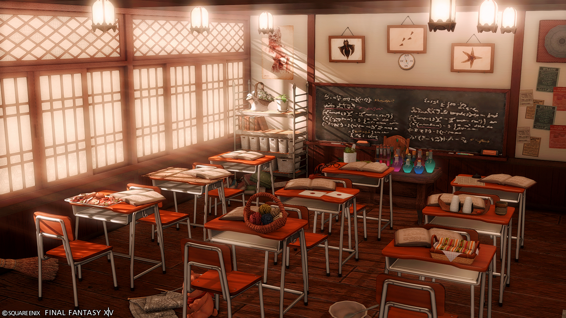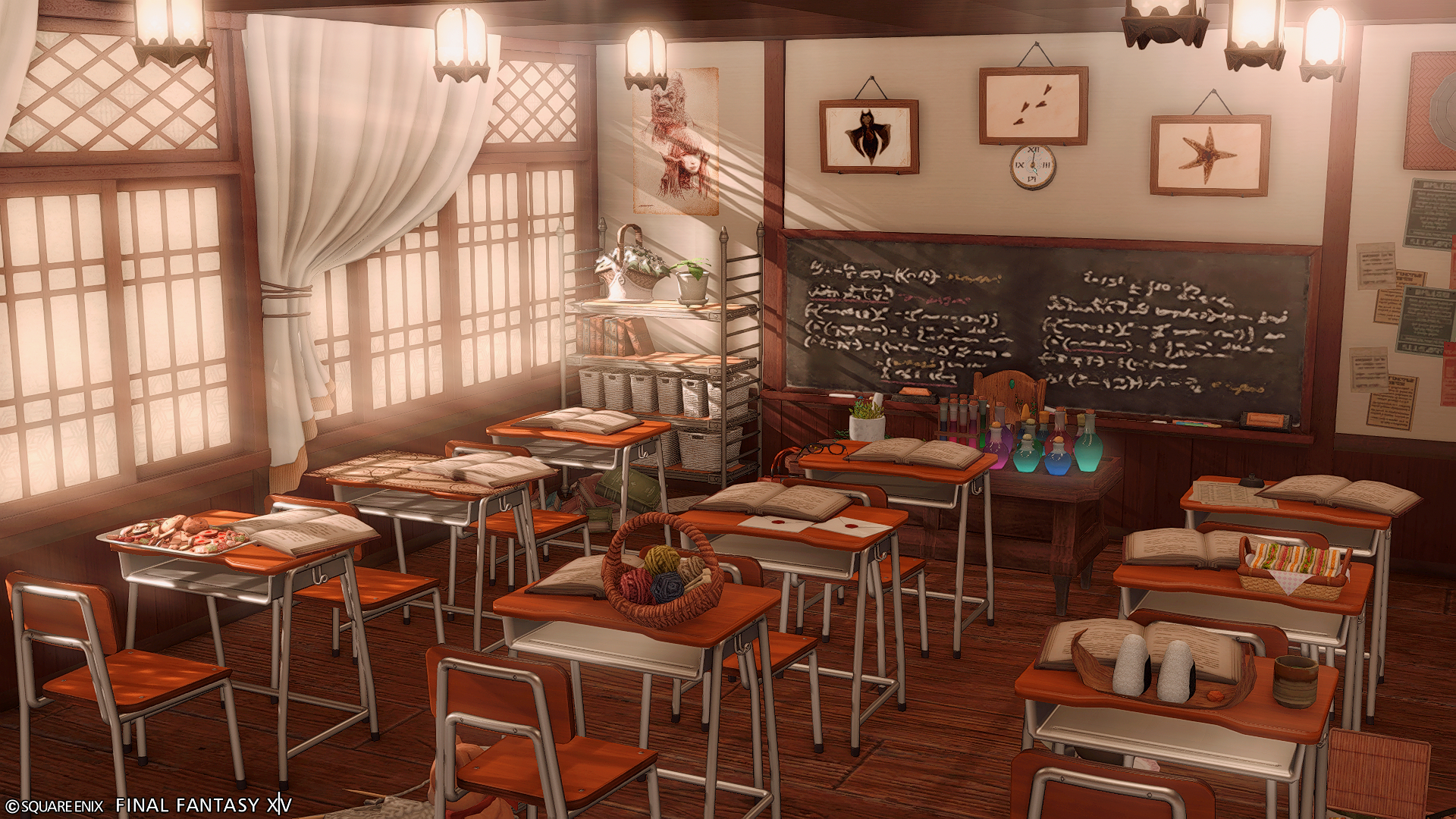 学校 by にあ(||BR||)🌐Gaia / Ifrit(||BR||)📍ミスト・ヴィレッジ29区13番(||BR||)旧校舎のような学校風スタジオ。地下は考え中です。(||BR||)朝と夕方に光が差し込みます。(||BR||)机の間は通れますがよくつっかえるのでお気を付けください。(||BR||)#ffすみか(||BR||)https://studio-xiv.com/studio/95423/