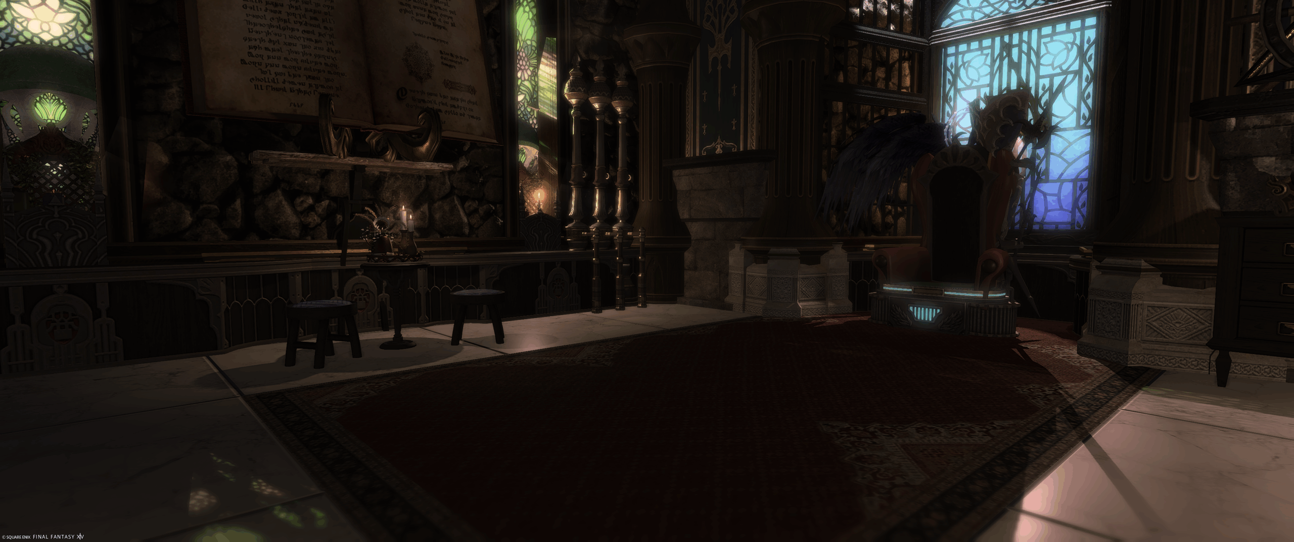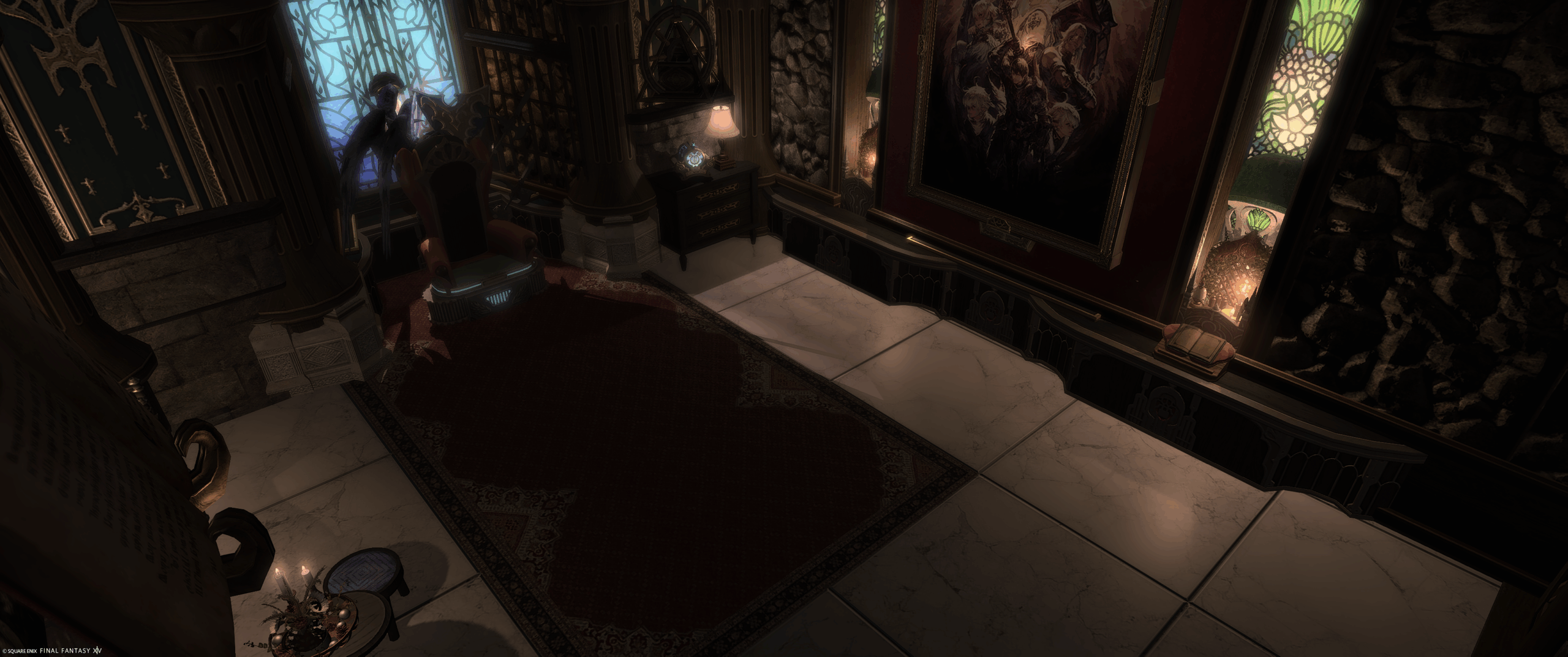 偉くなれた気分が味わえる(?)間 by Moon Norn(||BR||)🌐Meteor / Shinryu(||BR||)📍ラベンダーベッド15区(||BR||)アパルトメント22号室(||BR||)男くさいハウジングを作ろうとしたら(||BR||)普通にダークな内装になってしまった。(||BR||)偉そうに座るもよし、横スクロール風に撮るもよしなスタジオです(||BR||)#のんクオリティー(||BR||)https://studio-xiv.com/studio/95561/