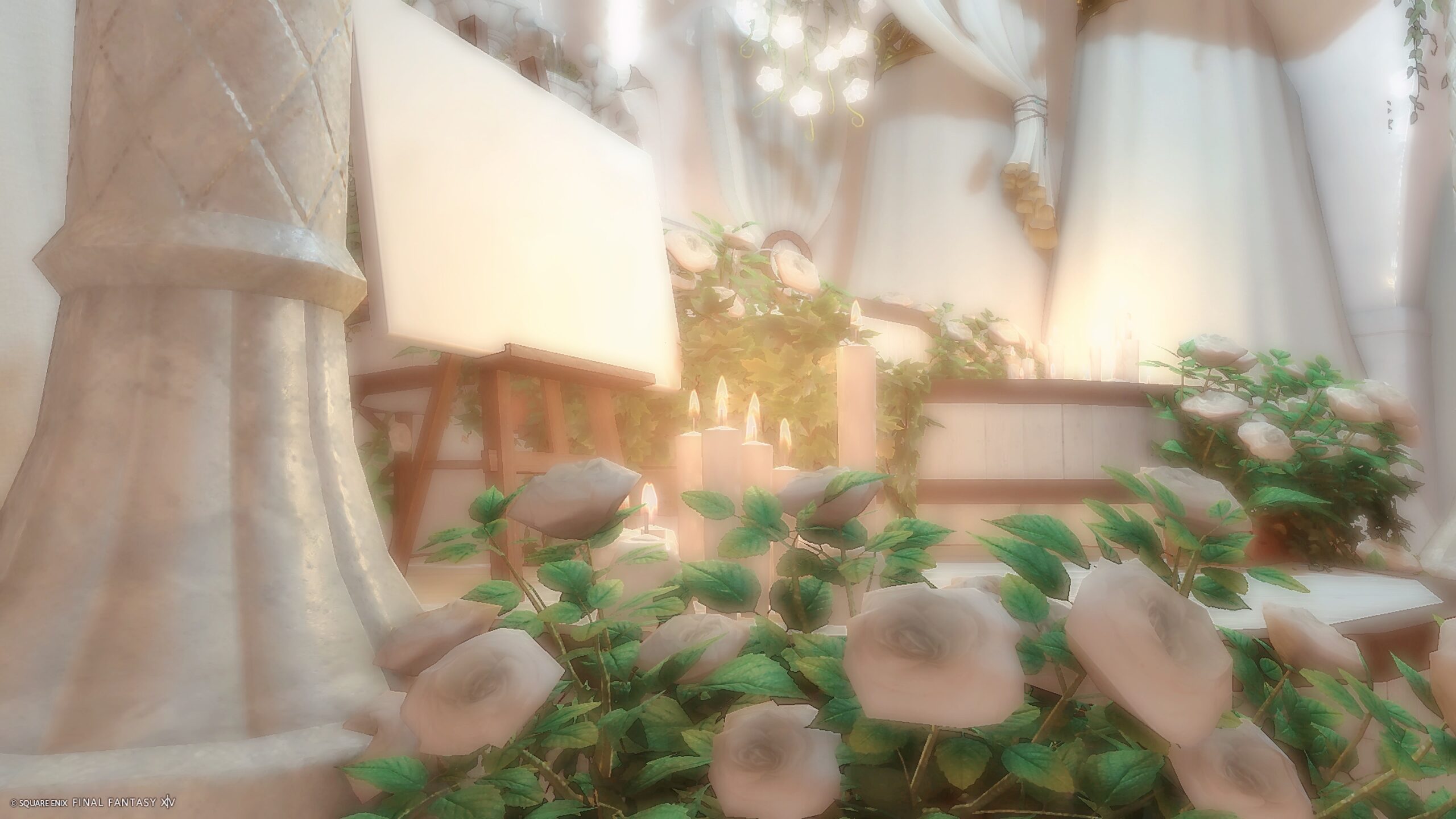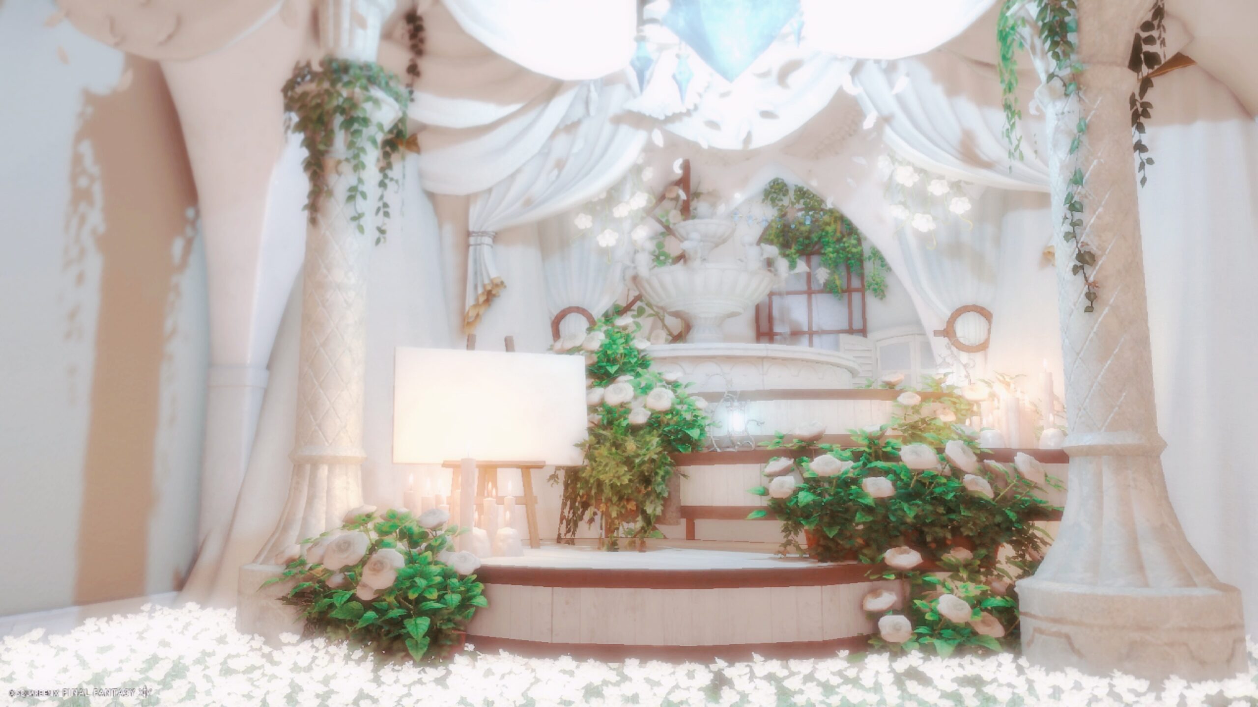 Serenite by okome(||BR||)🌐Meteor / Zeromus(||BR||)📍ミスト・ヴィレッジ1区28番個室 2号室(||BR||)ドレスやタキシードが映えるような(||BR||)祝福の光に包まれた白い空間を作りました。(||BR||)#okomeno(||BR||)https://studio-xiv.com/studio/95576/