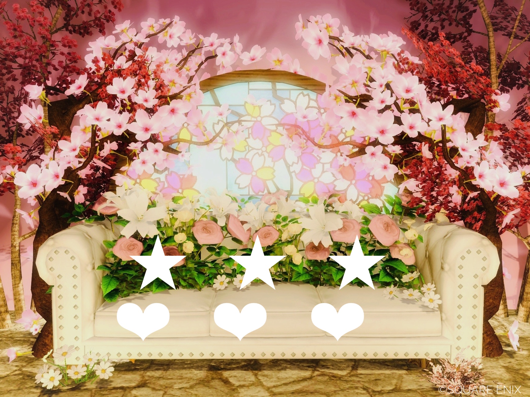 5枚目★はソファの上に、❤︎はソファの手前に立って「座る」で少しずれて一緒に座ることが出来ます