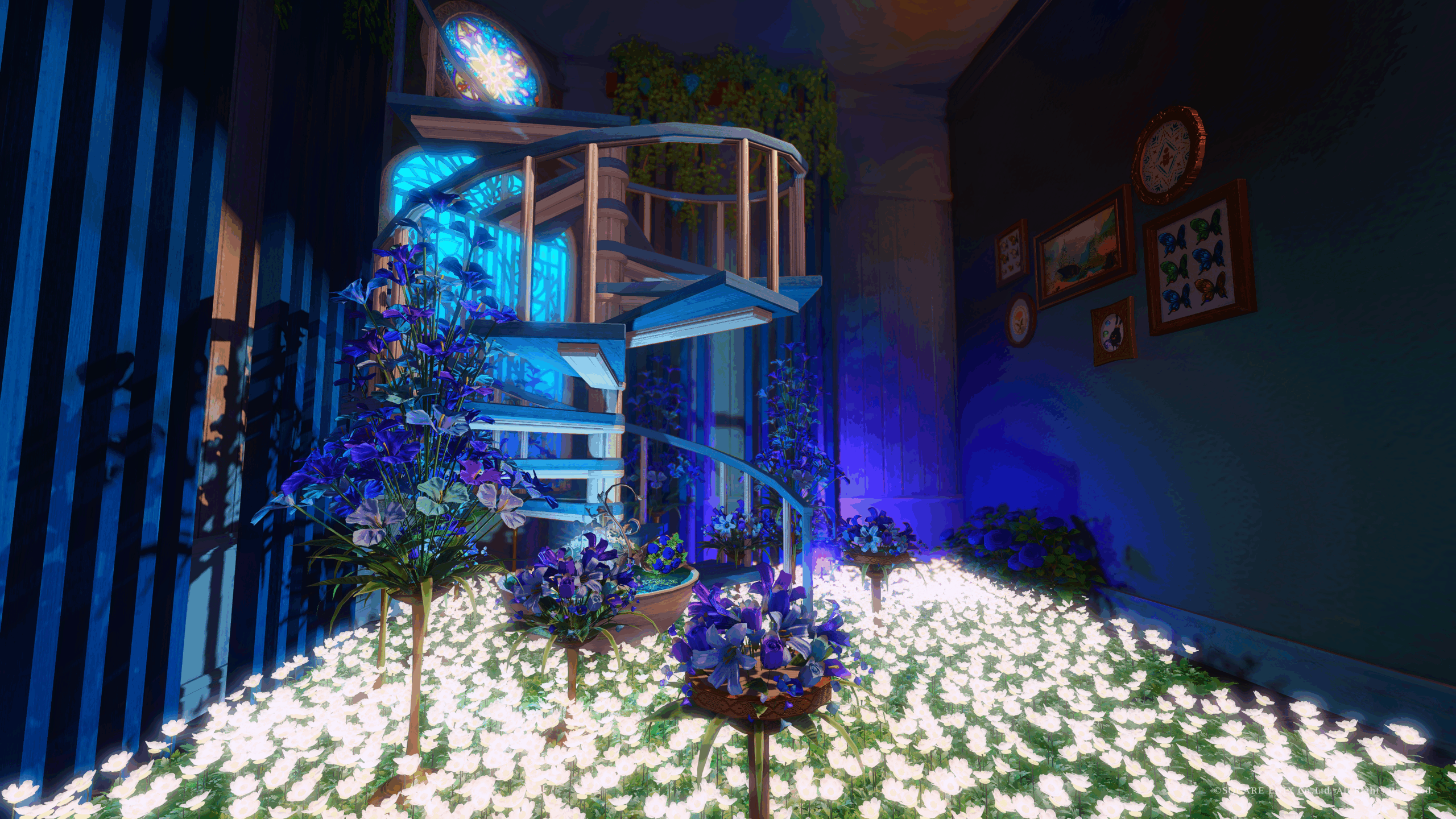 お家に入り左にあるお部屋(1枚目の画像)には螺旋階段、次元城の花瓶が並んでおり椅子を複数個重ねて配置しているため、座りながら1人、複数人でもSSを楽しむことができます!