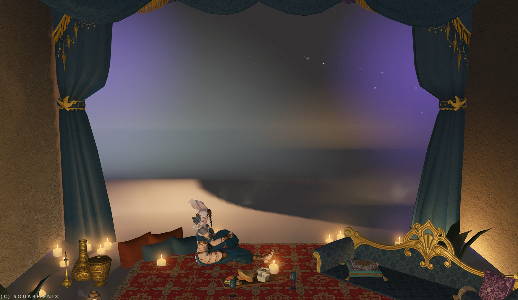 studioFw | Desert Mirage at Night by ふわわ(||BR||)🌐Gaia / Ifrit(||BR||)📍ミスト・ヴィレッジ29区(||BR||)アパルトメント31号室(||BR||)蜃気楼のような砂漠の夜をライティングで描きました𓃦ˎˊ˗(||BR||)◺入室後はその場でジャンプ(||BR||)◺SSを明るく撮りたい方は「明るさのマニュアル調整を有効に(||BR||)#studioFw(||BR||)https://studio-xiv.com/studio/96936/