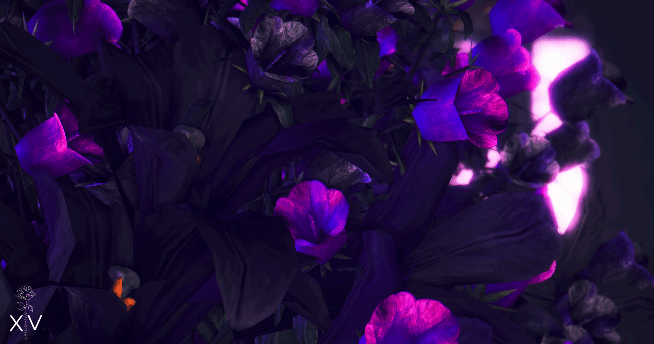 妖艶な光を出すために花の周りにライトを散りばめておりますが