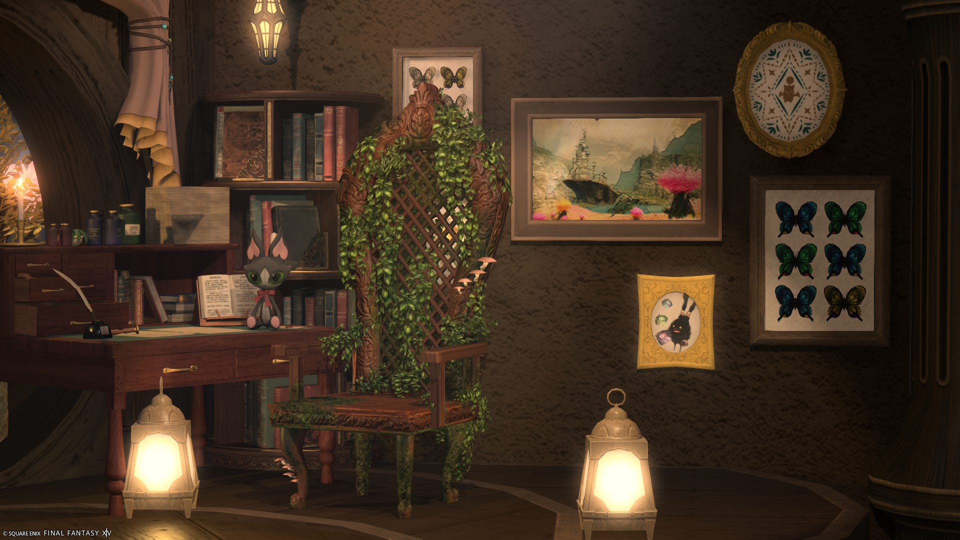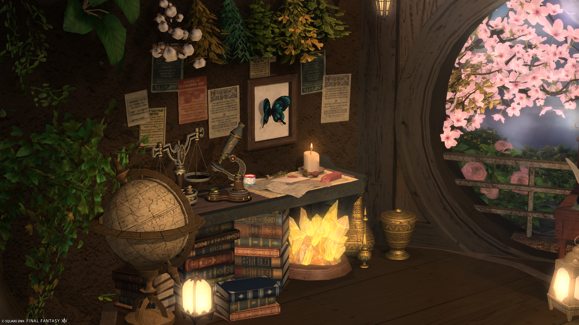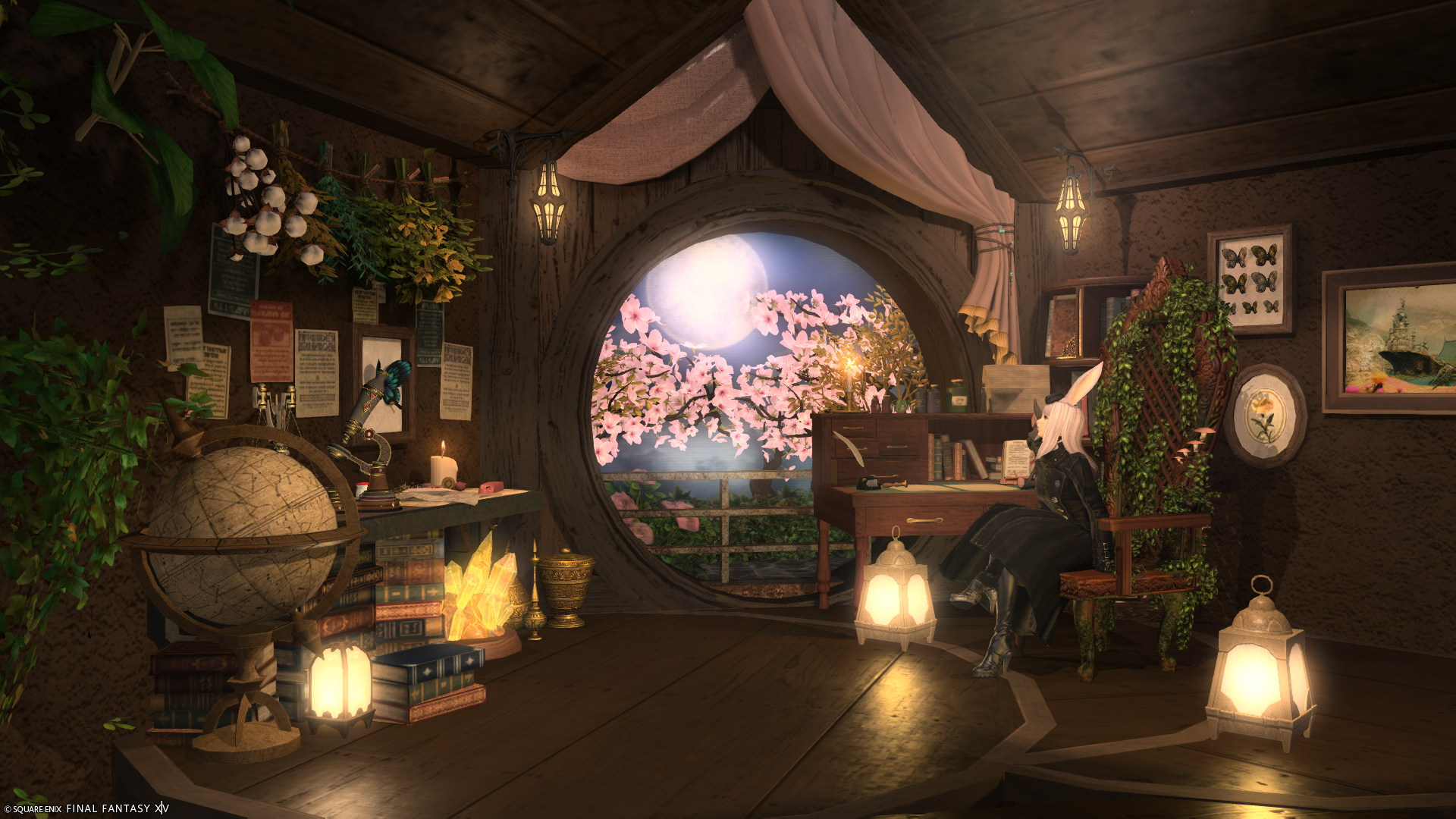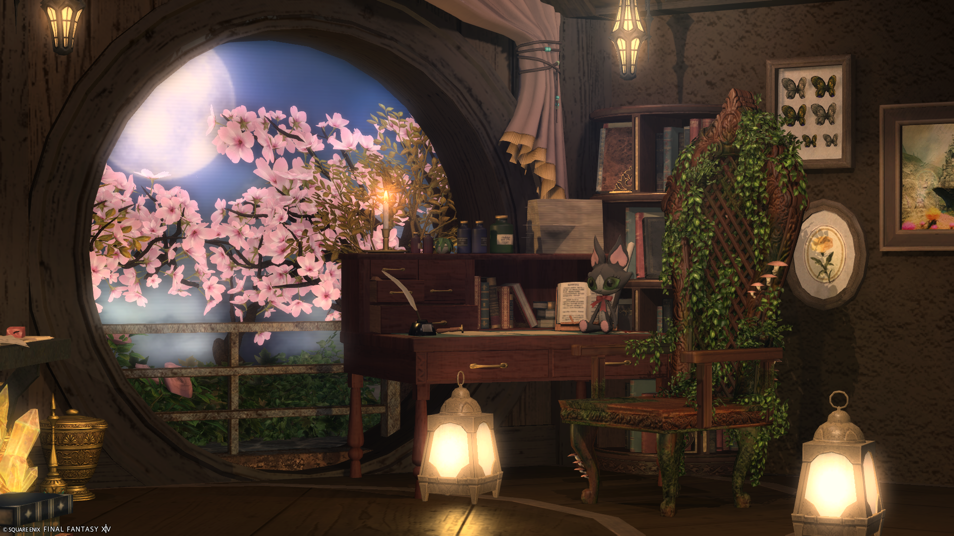花舞う書斎 by マユ(||BR||)🌐Gaia / Fenrir(||BR||)📍エンピレアム21区38番(||BR||)お花見とお月見が両方できる、ちょっとノスタルジックなブースを作りました。(||BR||)個人宅2Fにあります。(||BR||)見本のSSは「セピア2」のフィルターを20%かけています。(明るさ調整なし)(||BR||)#isne_rooms(||BR||)https://studio-xiv.com/studio/98015/