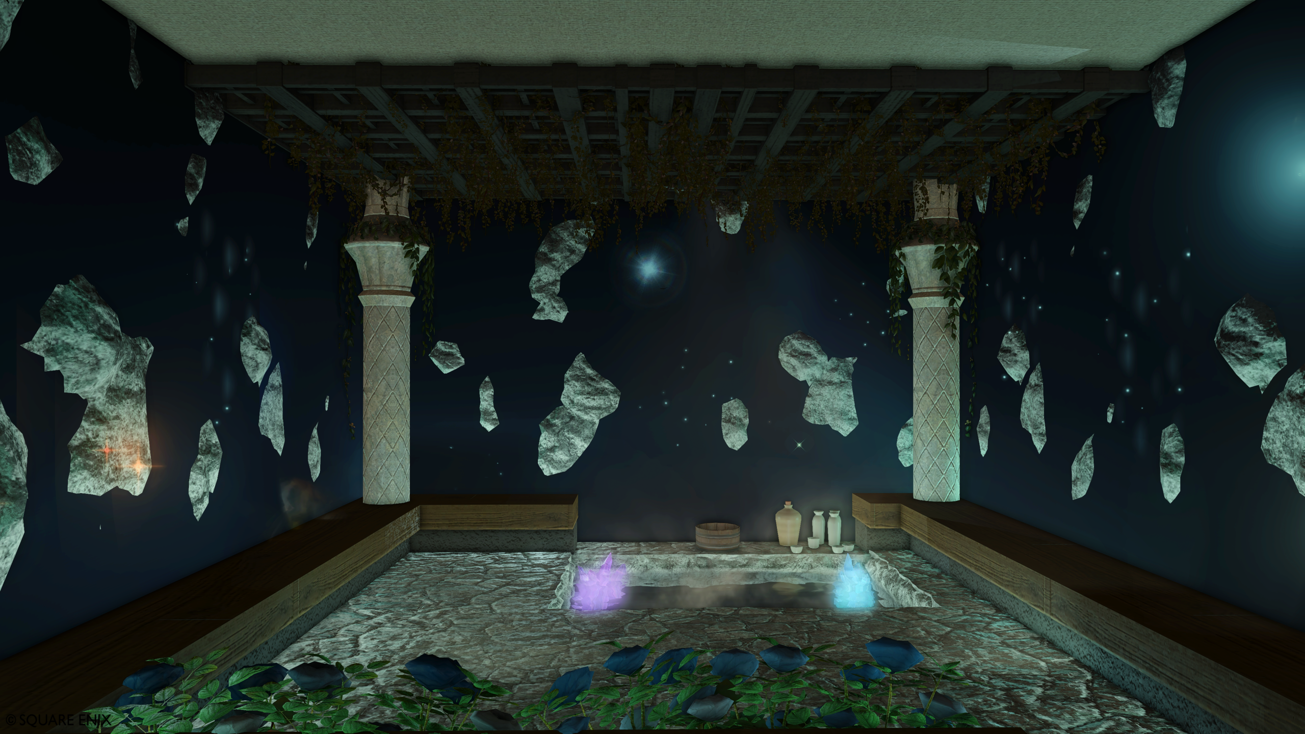 Bathroom by Mowen Classica(||BR||)🌐Mana / Ixion(||BR||)📍ラベンダーベッド27区6番Room007号室(||BR||)湯船に浸かりながら宇宙を眺める(||BR||)そんな非日常空間となっております。(||BR||) (||BR||)1つのハウスに15の個室をギュッとひとまとめ!(||BR||)他の個室ともどもぜひお楽しみください♪(||BR||)#musica_ff14(||BR||)https://studio-xiv.com/studio/98044/