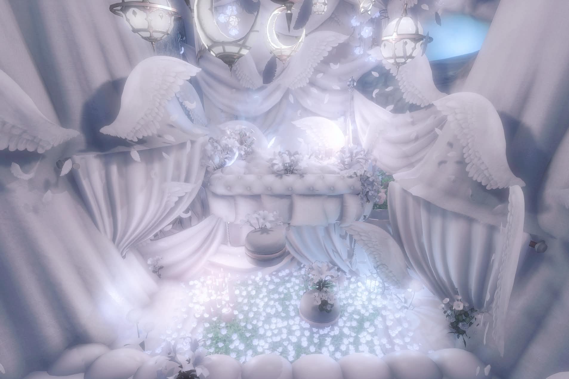 Le repos de l’ange by Erythria(||BR||)🌐Meteor / Mandragora(||BR||)📍ミスト・ヴィレッジ11区10番(||BR||)Le repos de l’ange(||BR||)天使の羽休め(||BR||) (||BR||)☆のところに座れます(||BR||)ベットもあるので居眠りエモで横になれます(||BR||)#Erythria(||BR||)https://studio-xiv.com/studio/98136/