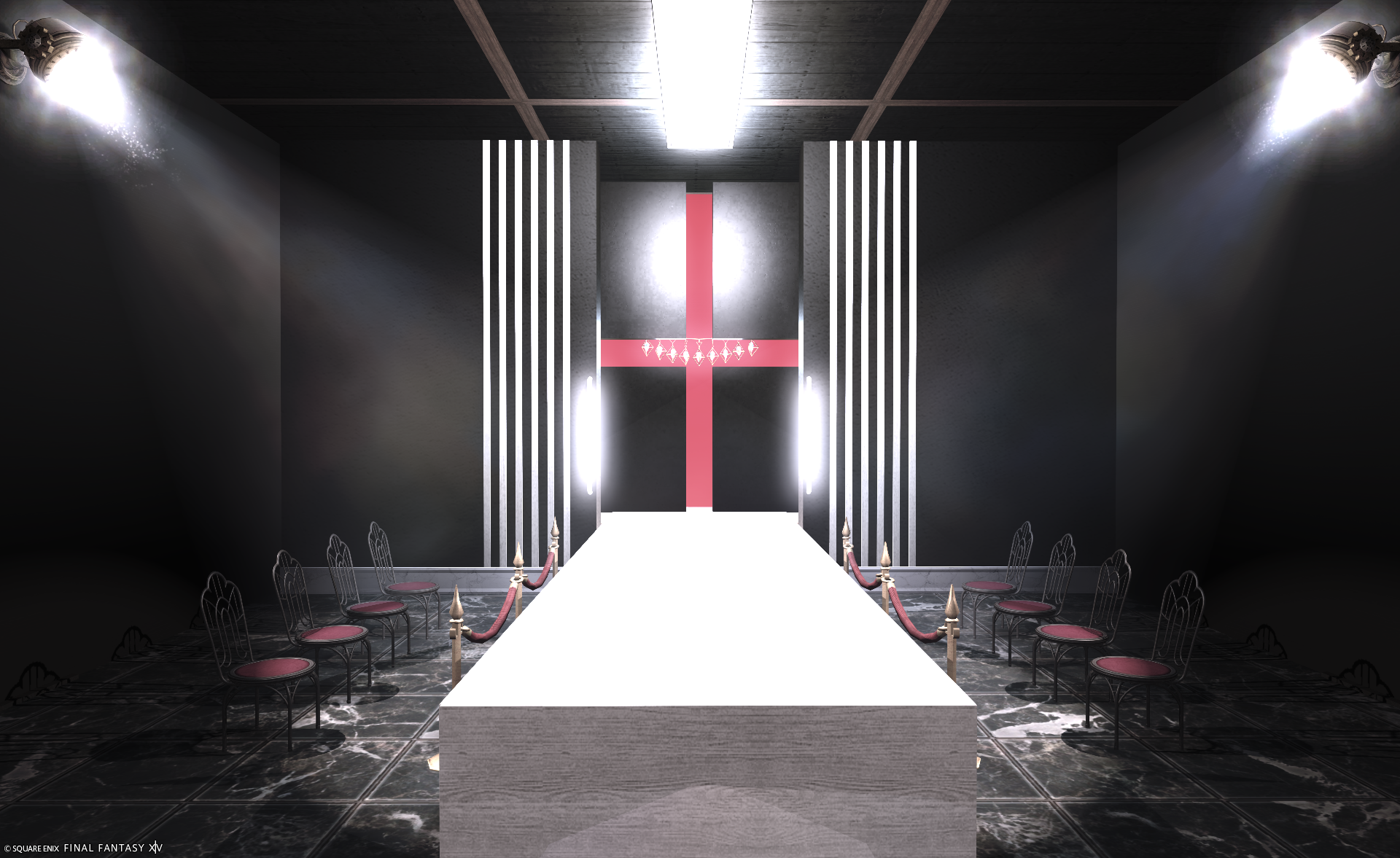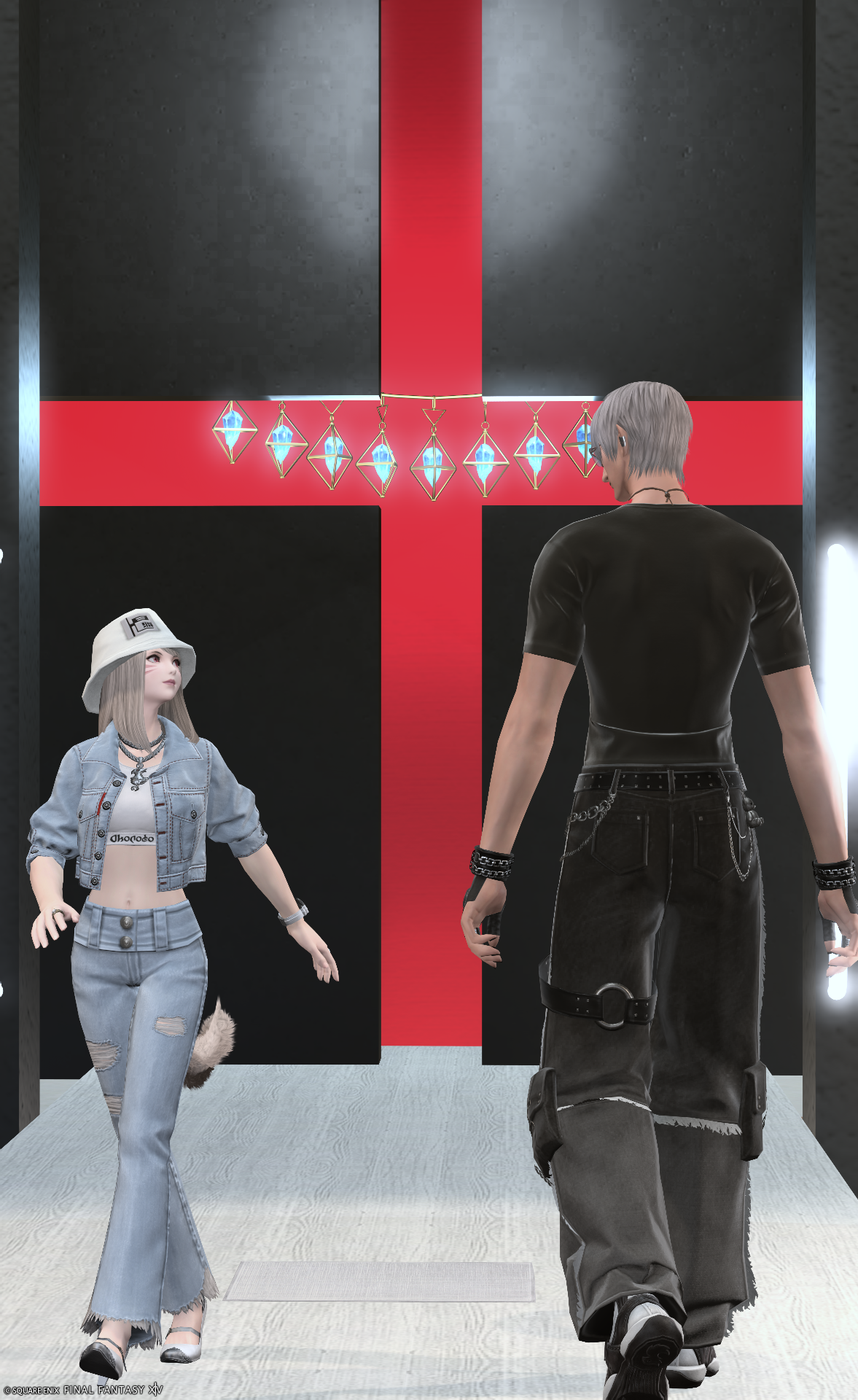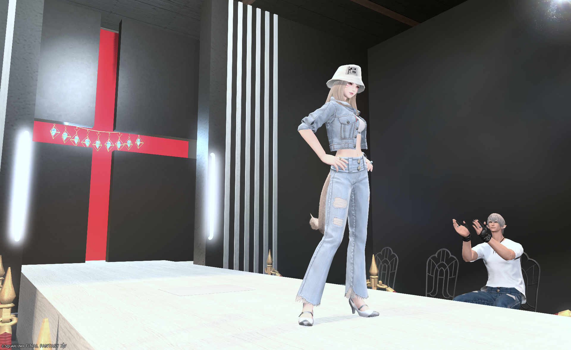 モノトーン×レッドでモデルウォークが映えるランウェイを作成しました。
